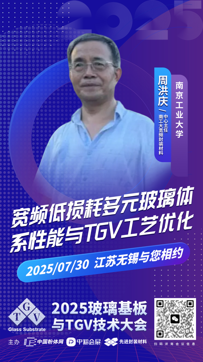 为强化行业信息交流,中国粉体网将?025??0日在无锡举办2025玻璃基板与TGV技术大会、/span>届时+strong>南京工业大学宽频封装材料中心主任周洪庆将作题为《宽频低损耗多元玻璃体系性能与TGV工艺优化《/span>的报告,分享半导体玻璃基板材料组成、制造工艺及其宽频介电与机械力学性能特征,结合半导体玻璃基板与TGV共性难点问题,提出相应的改进观点与优化措施,供与会同行交流探讨?/p>