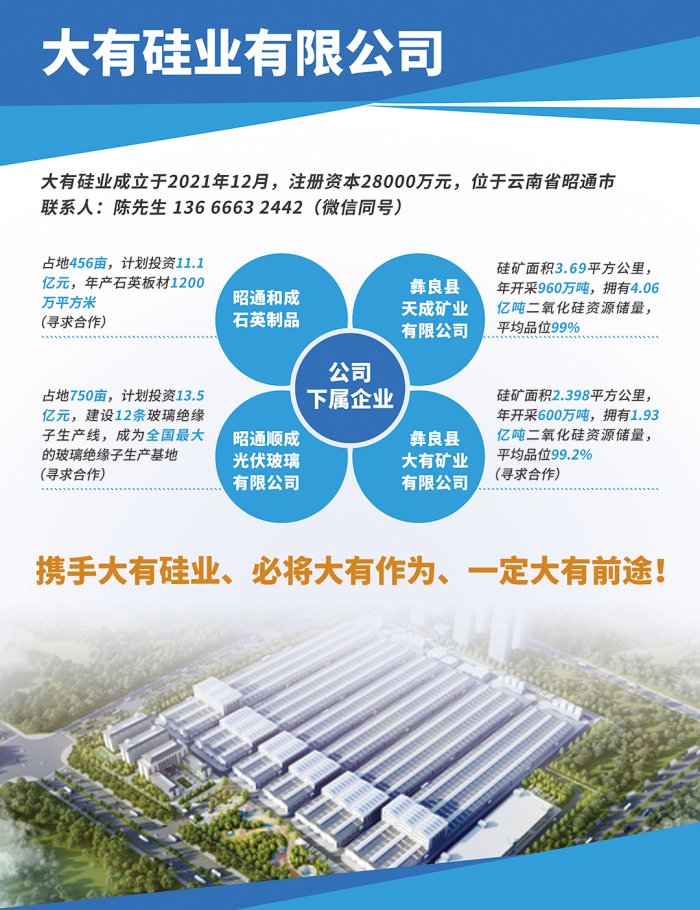 由中国粉体网主办的‛span style="color: rgb(255, 0, 0);">2025第六届全国板材用石英砂供需洽谈伙/span>”将亍span style="color: rgb(255, 0, 0);">8??/span>?span style="color: rgb(255, 0, 0);">山东枣庄举办+span style="background-color: rgb(255, 255, 255); text-indent: 32px; color: rgb(34, 34, 34); letter-spacing: 1px;">大有硅业有限公司邀您一同参加、/strong>