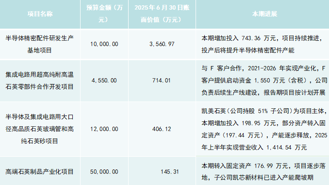 在建项目推进顺利,半导体精密配件研发生产基地?大项目总预?.655亿元,凯美石英石英砂项目实现营收1414.54万元、/p>
