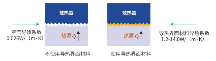由于电子器件的表面往往高低不平,电子器件与散热元件之间一般存在空隙。空气是热的不良导体(热导率?.025W/(m·K)),其存在会极大的降低散热效率。为了解决这一问题,需要在界面处填充具有较高热导率的界面导热材料,以降低接触热阻。随着集成电路的小型化和微型化,电子设备厂家对高效的导热散热材料的需求愈发强烈、/p>