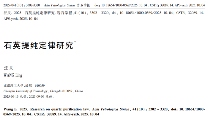 近三年,汪灵教授进一步补充实验数据,最终完成了〉strong>石英提纯定律研究》一文,并于近日在《岩石学报》高纯石英专题发表。该文章研究和探讨了石英提纯定律的实验依据、理论依据及重要意义,同时还分析和回答了一些高纯石英行业比较关心的重大理论问题、/p>
