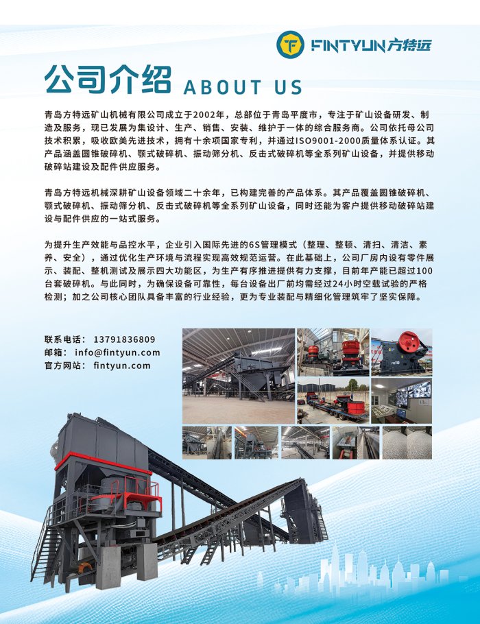 青岛方特远矿山机械有限公司,始创?002年,?017?月更名青岛方特远矿山机械有限公司。自成立起,公司秉承“科技创新,诚信经营”的立业精神,先后引进欧美国家一系列先进破碎技术,并不断创新、研发,如今已发展为从事矿山机械及其配件研发、生产、销售、服务于一体的专业化综合性企业、br/>