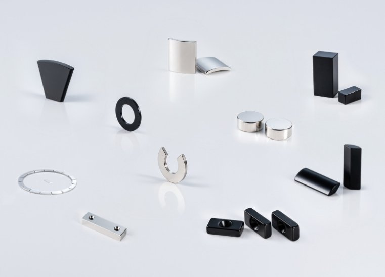 钕铁硼磁钢是当前可商业化大批量生产的永磁材料也被称为钕磁, 是由钕、铁、硼 形成的四方晶系晶体,是一种能量密度很高的储能器,可以高效地实现能量和信息的相互转换而本身能量并不消耗。超高能密度的钕铁硼永磁材料促进科学技术与信息产业向集成化、薄型化、超小型化、轻量化、智能化发展。钕铁硼磁钢是目前常使用的稀土永磁材料、/p>