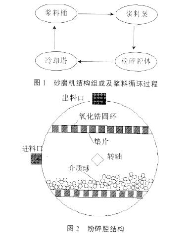 直接接触, 所以要求这些部件必须耐磨, 通常是增强二氧化锆陶瓷。“筛网”用金属垫片的厚度调节“网眼”的大小, 初始浆料中颗粒粒度必须小于垫片厚? 否则会引起“筛网”堵塞、br data-filtered="filtered" style="margin: 0px; border: 0px; padding: 0px;"/>砂磨机粉碎中, 介质球的强度和尺寸大小影响着粉碎效率。介质球必须耐磨, 一般采用增强氧化锆球。同其他机械粉碎法相? 增大介质球的表面积有利于制备粒度小的颗粒。生产中, 制备颗粒平均粒径d50 ?.45 !m 的粉料时, ZrO2 陶瓷球的直径?.5 mm。在美国和日? 常采用直径为0.3 mm 甚至更小的ZrO2 陶瓷球来制备颗粒平均粒径d50 小于0.30 "m 的粉料、br data-filtered="filtered" style="margin: 0px; border: 0px; padding: 0px;"/>