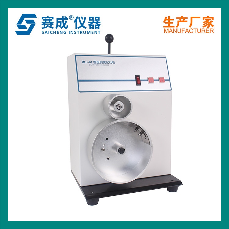 圆盘剥离试验机是适用于凹版印刷工艺生产的塑料薄膜和玻璃纸装潢印刷品(包括复合膜印刷品)进行印刷墨层结合牢度的测试试验。亦用于真空镀膜、表面涂布、复合等相关工艺形成的面层之附着状态的机器。赛成研发的‛/span>吊牌油墨附牢度测试仪"可完成此检测、/span>