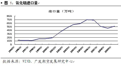 随着国内电解铝产能的增加,氧化铝的需求也在不断增大,?006年到现在,我国用了不到三年的时间,实现了氧化铝产量的翻番,自1318万吨增长?385万吨。但仍满足不了国内电解铝冶炼需求,国内的电解铝企业长期大量进口氧化铝?009年,中国进口氧化?14万吨,占国内总需求量?0%以上?010年前6个月进口氧化铝接?32万吨,全年总进口量预计?009年持平、br />