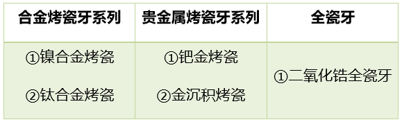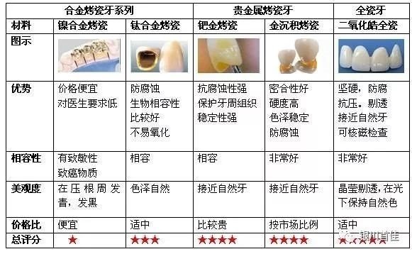 目前市场上各类烤瓷牙的对比,如下国/p>