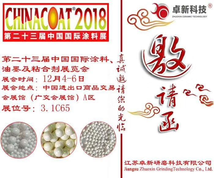 ChinaCoat 2018第二十三届中国国际涂料展将移师广州,定于2018?2?--6日在广州中国进出口商品交易会展馆盛大举行、/span>江苏卓新研磨科技有限公司携氧化锆珠亮相盛会,期待您莅临展?.1C65、/span>