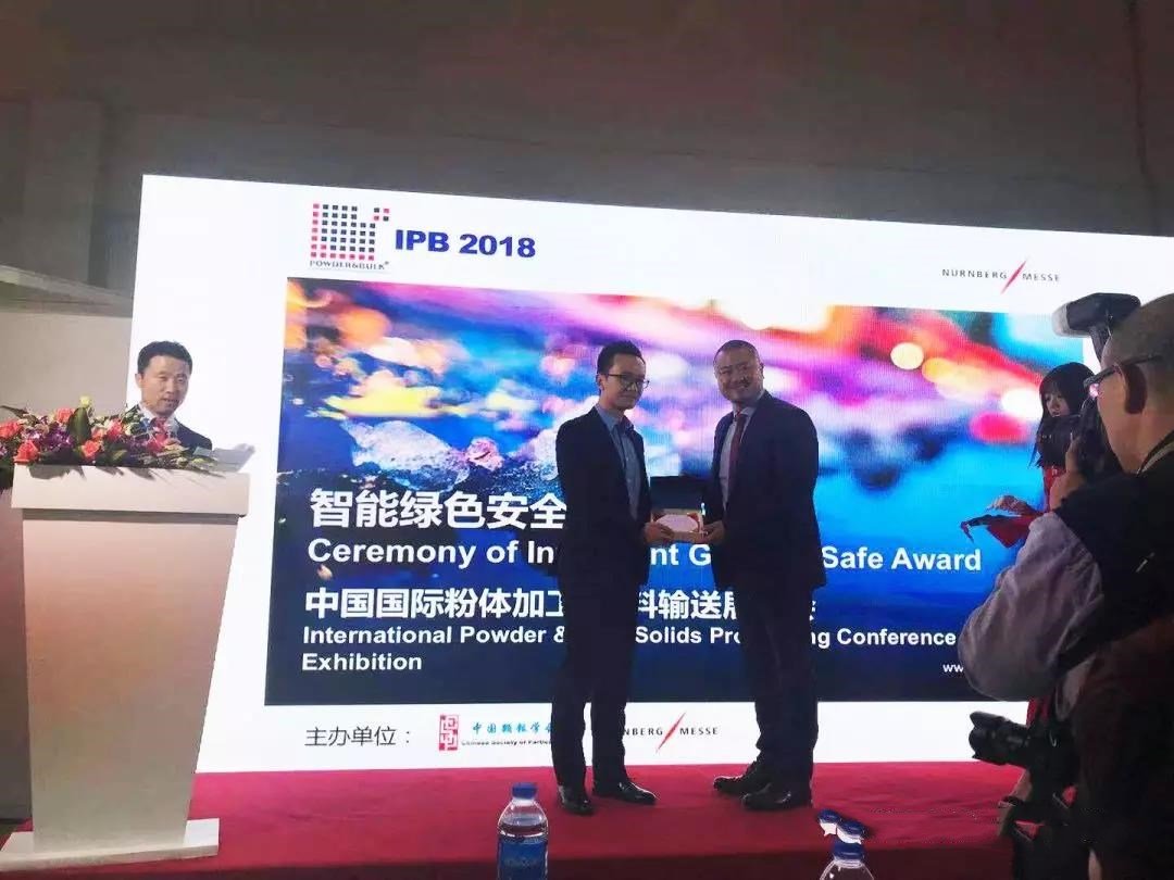 绿色环保安全奖(Intelligent Green & Safe Award)是中国颗粒学会与纽伦堡会展(上海)有限公司首次联合颁发,目的是响应国家环保政策,推动行业可持续发展,表彰行业内在智能绿色安全生产领域做出突出贡献的企业、/p>