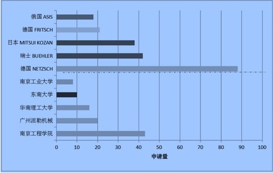 对高能球磨机全球申请人的申请量进行统计分析,从国外主要申请人来看包括德国NETZSCH、瑞士BUEHLER、日本MITSUIKOZAN、德国FRITSCH等,其中+span style="color: rgb(36, 64, 97);">德国NETZSCH(耐驰(/strong>公司展现出了强大的科研实力、/p>