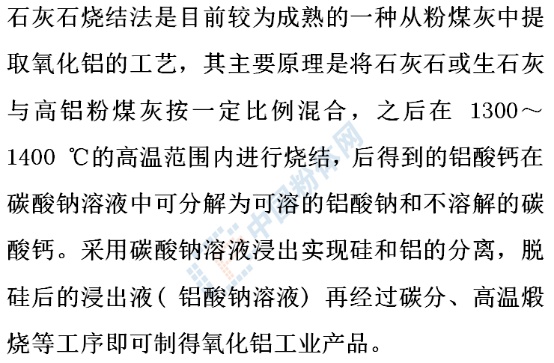 目前,从粉煤灰中提取氧化铝的工艺主要有石灰石烧结法、浓碱溶出法、酸浸法、水热活化法等、/p>