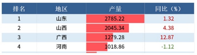 产量方面,国家统计局数据显示+strong>2022年中国氧化铝产量8186.2万吨,同比增?.6%。其中,2022年山东产量为2785.22万吨、山西产?045.34万吨、广西产?279.28万吨和河南产?018.86万吨,产量分别同比增?.32%?.38%?2.87%?1.12%、/p>