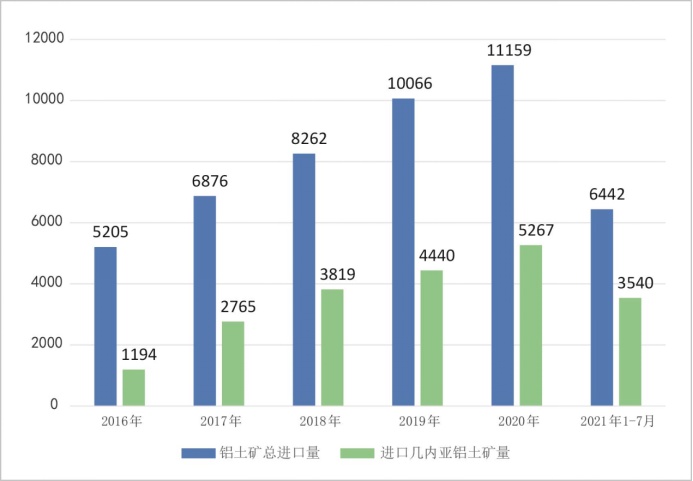 近几年几内亚成为我国第一大铝土矿进口国(万吨(/p>