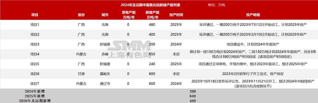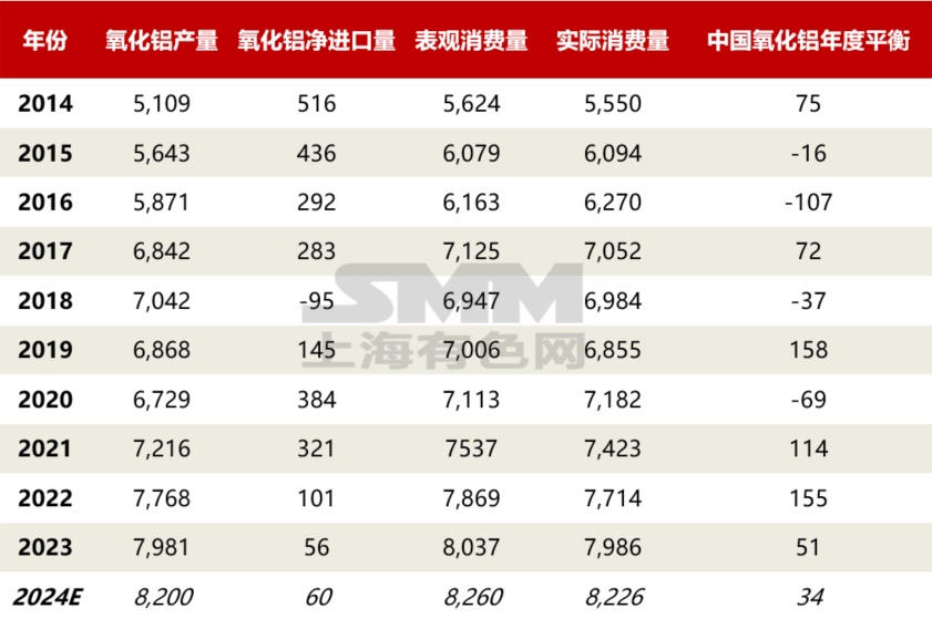 据SMM数据+span style="color: rgb(192, 0, 0);">2023年全年国内电解铝累计产量?151.3万吨,同比增?.6%。纵?024年全年来看,SMM预计云南此次复产落地之后,运行产能或逐步增加,加之内蒙古华云三期新增投产、贵州安顺铝业的复产+span style="color: rgb(192, 0, 0);">SMM预计2024年全年产量或同比增长2.9%?273万吨左右,按生产一吨电解铝消?.925吨氧化铝的单耗计算,2024年国内氧化铝实际需求量将达8225.5万吨、/p>