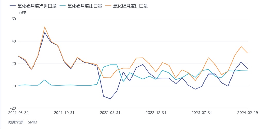 此外,随着设备老旧等问题的出现,一些海外氧化铝厂难以达到满产运行,叠加近几年中国氧化铝产能过剩,对下游来说,使用国产氧化铝的成本远低于进口氧化铝,因此?年来中国对海外氧化铝进口量逐渐下降,对外依存度逐步减弱、/p>