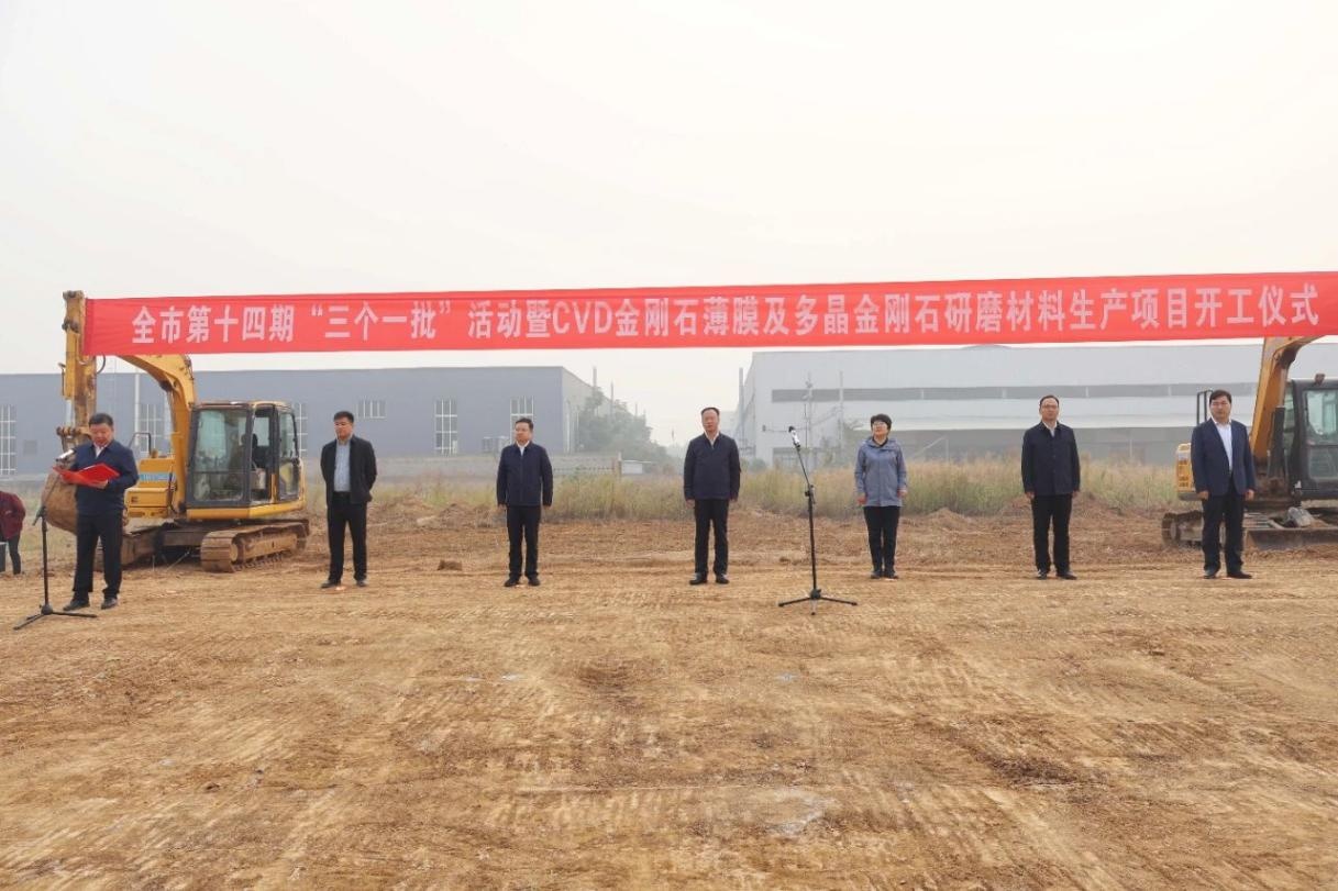 中国粉体网讯10?日上午,河南平顶山市第十四期“三个一批”活动暨CVD金刚石薄膜及多晶金刚石研磨材斘/strong>生产项目开工仪式举行、/span>市委常委、郏县县委书记王景育,市人大常委会副主任李玉洁,县领导乔东涛、李林、杨兆华、姚灿锋出席仪式,并为项目奠基培土、br/>
