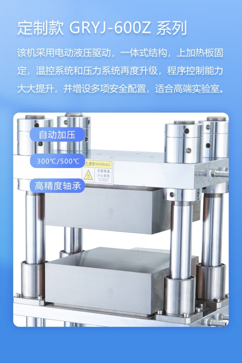 该机采用电动液压驱动,一体式结构,上加热板固定,温控系统和压力系统再度升级,程序控制能力大大提升,并增设多项安全配置,适合高端实验室、/span>