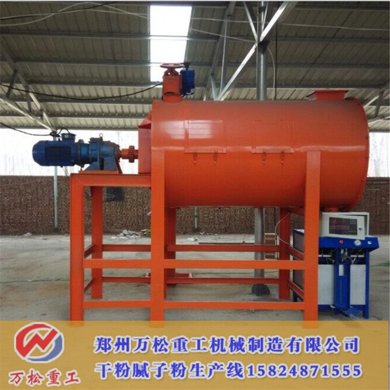 全自动腻子粉搅拌机用途及特点?nbsp; 卧式搅拌机是郑州万松重工机械制造有限公司新一代混合设备。混合均匀度高,残留量少,适合两种以上物料,添加剂预混料的混合。具体特点是:物料得到充分的混合,从而提高了混合均匀度;采用新颖的转子结构,转子与桶体的最小间隙可调至接近零位,有效地减少了物料残留量;能把较大的物料破碎,总体结构更加合理,外形美观,操作维修方便。详情请咨询销售热线:158-2487-...