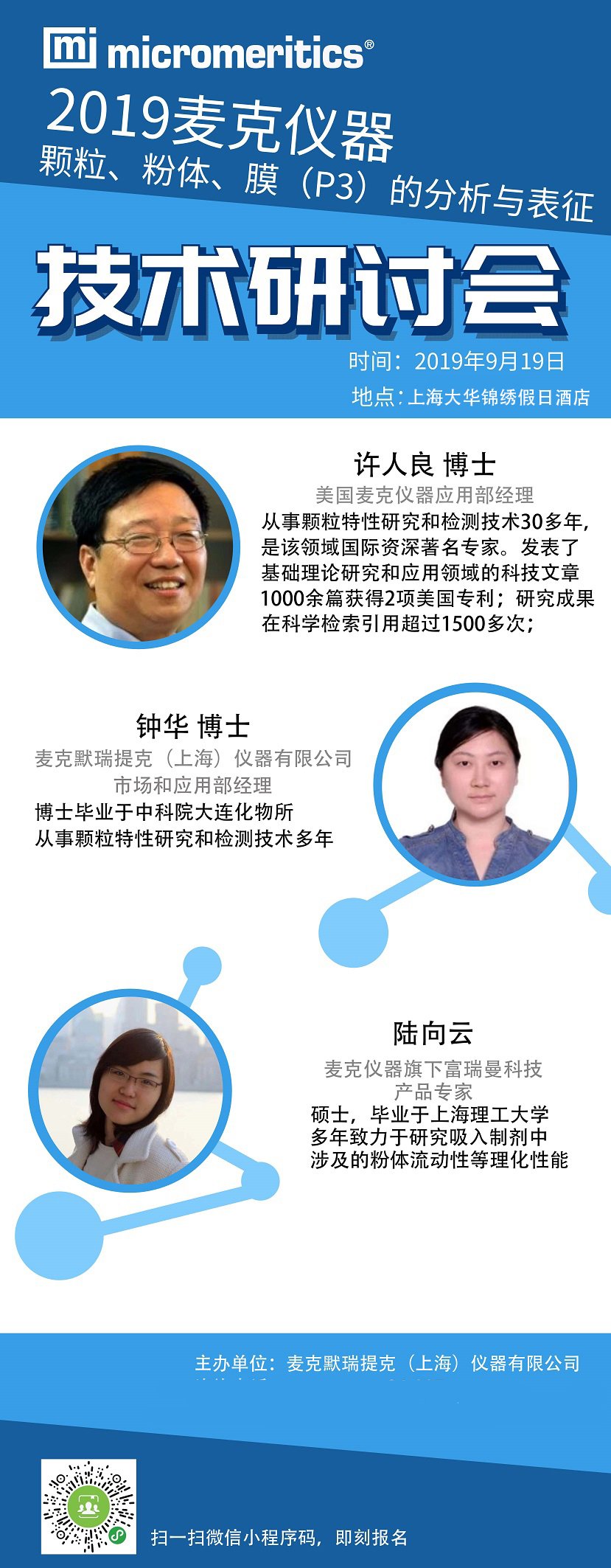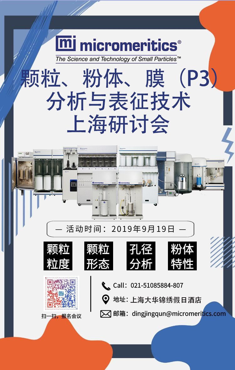 材料表征领域的领导者Micromeritics麦克仪器公司将举办《颗粒、粉体、膜(P3)的分析与表征技术研讨会》,分享国际领先的材料表征技术及实际应用,为用户的材料分析与表征提供完整性解决方案。诚挚邀请您出席本次研讨会!