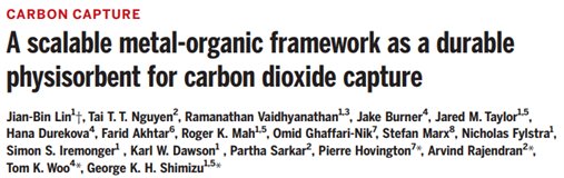 近日,加拿大卡尔加里大学 George K. H. Shimizu、阿尔伯塔大 Arvind Rajendran、渥太华大学 Tom K. Woo Svante 公司 Pierre Hovington 等人 Science《科学》杂志上发表成果《A scalable metal-organic framework as a durable physisorbent for carbon dioxide capture》,报告了利用商业的原料直接单步合成新的 MOF,Zinc-based Calgary Framework 20 (CALF-20), 讨论了CALF-20的CO2 吸附性能、/span>