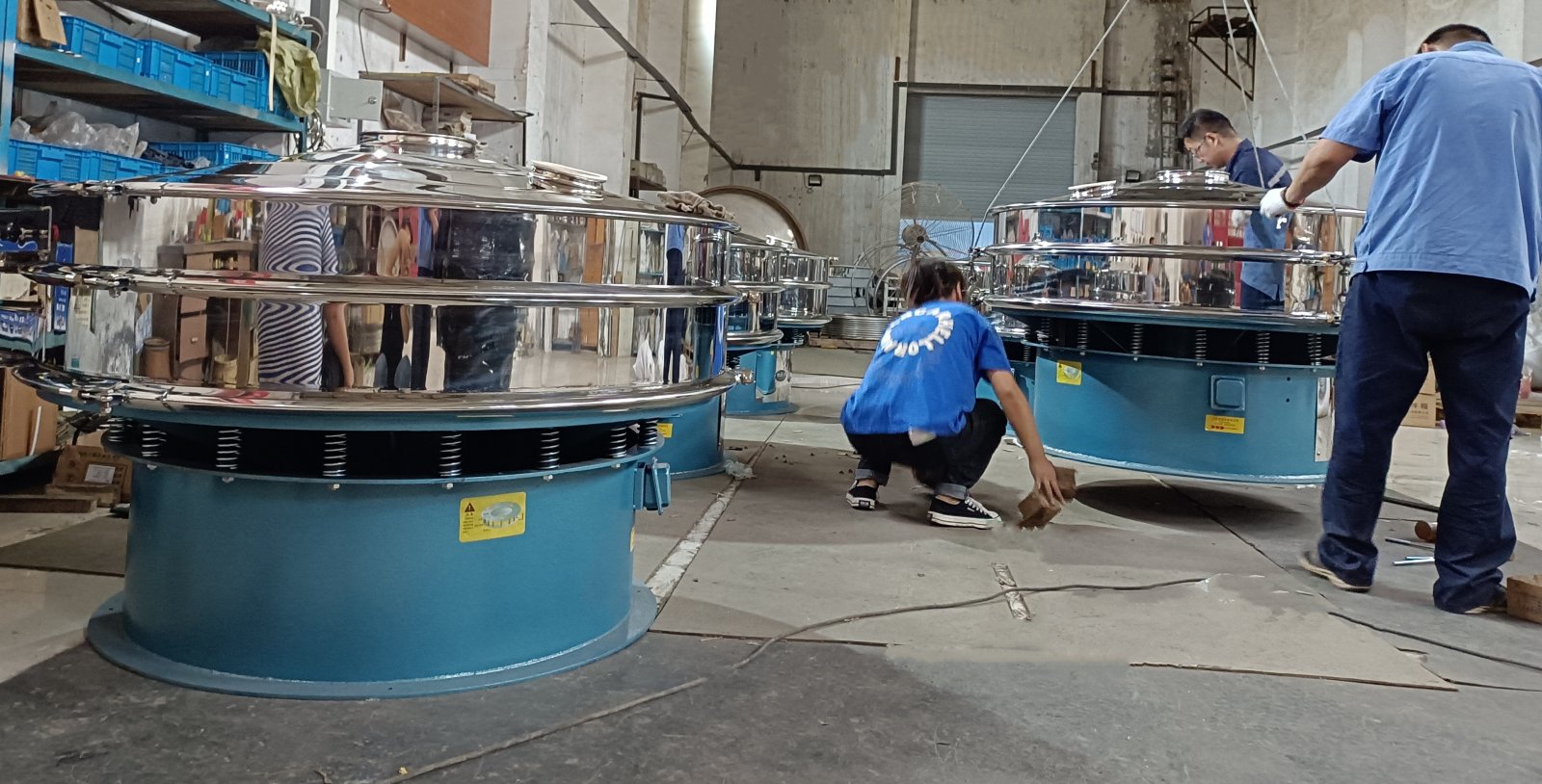 经过车间工匠?/span>7天奋战,裁板、卷框、卷束环、下料焊接、校正、网架打眼、绷网等一系列工序,雷蒙特M1500-1S电池材料专用三次元振动筛6台终于进入组装车间。目前组装已接近尾声,马上要发往我国的大东北、/span>