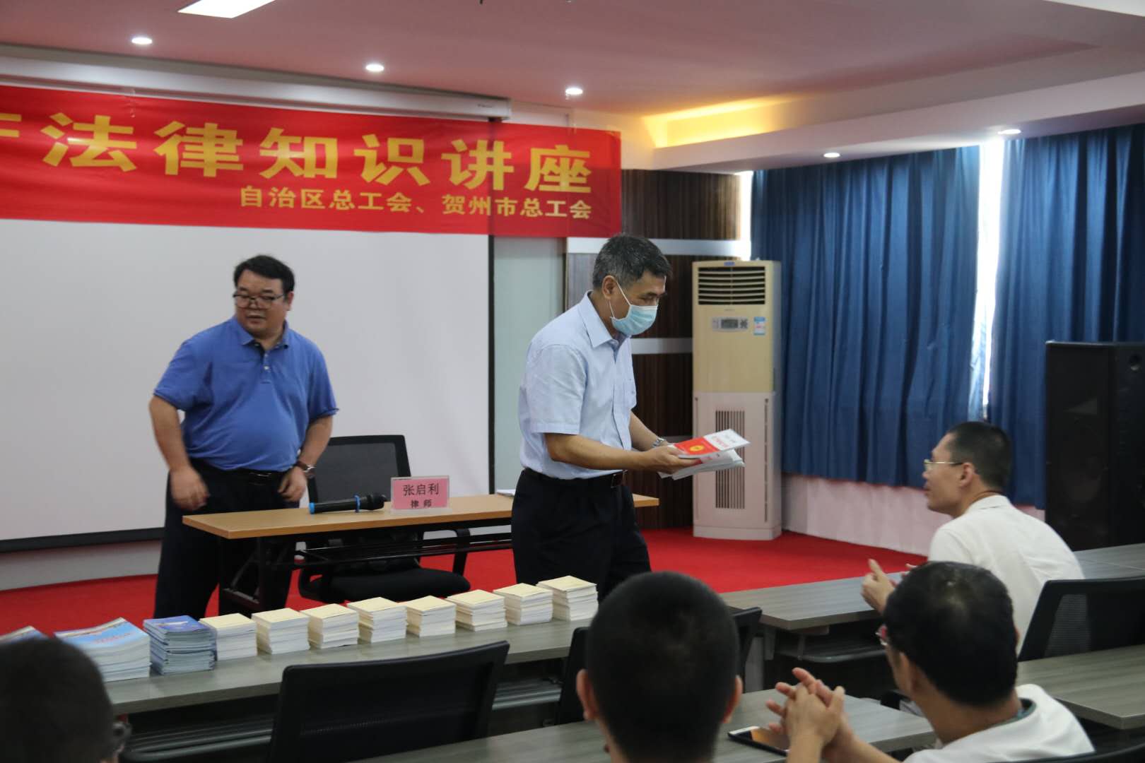 座谈会结束后,元德新一行在复工复产法律讲座现场,向听课人员发放了《职工劳动权?00问》、《农民工维权手册》、《广西壮族自治区企业工资集体协商条例》、《保障农民工工资支付条例》和《复工复产法律宣传材料》等资料、/p>