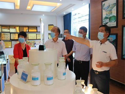 陆元鸿在公司展厅作了介绍,他风趣地说,今天正好是科隆公司24岁生日,在这个有纪念意义的日子,各位领导到公司指导工作,是科隆公司的荣幸。科隆公司在重质碳酸钙行业深耕细?0余年,获得“中国碳酸钙行业重钙十强”、“全国五一劳动奖状”、“国家高新技术企业”、“国家知识产权优势企业”和“广西重质碳酸钙工程技术研究中心”等殊荣,是《碳酸钙分析方法》等国家标准及《工业用重质碳酸钙》等行业标准的起草单位。产品广泛用于人造石、造纸、涂料、橡胶、塑料、油墨、建材及日用化工等行业、/p>