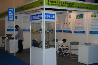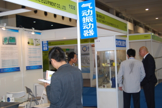此次,凯普公司展示了气动振动器、气动敲击锤、助流气碟、电磁脉冲阀、空气炮等产品。展会现场,很多公司表示了很大的兴趣。下图国药龙立公司杜总驻足观看、详细询问、br />