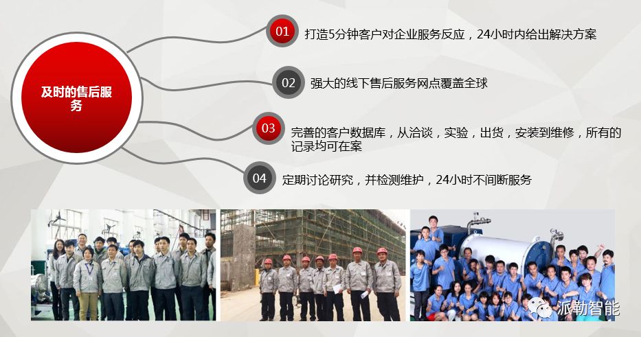 对于工业品生产设备而言,合同的签订,才是刚刚开始,后期的服务尤其重要。派勒的售后服务团队奔赴在各地为广大客户做好精诚服务,协助客户安装调试,操作培训,解决遇到的问题、/p>