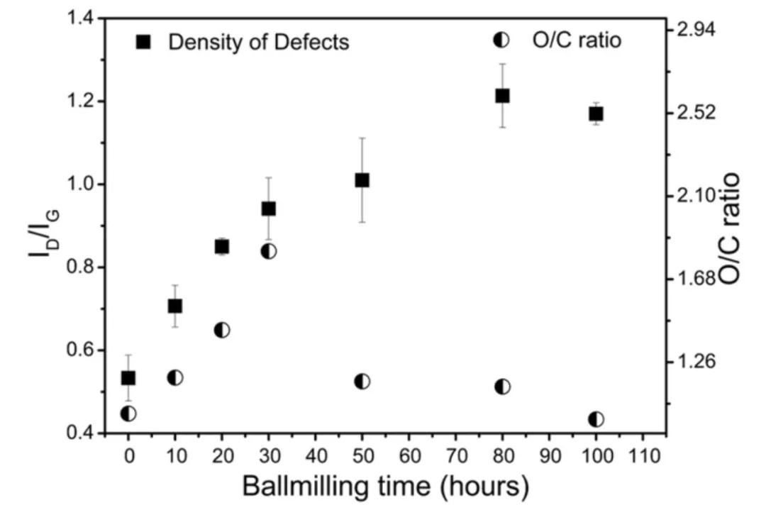 石墨烯中缺陷密度和氧化石墨烯氧化度随球磨时间的变匕/span>