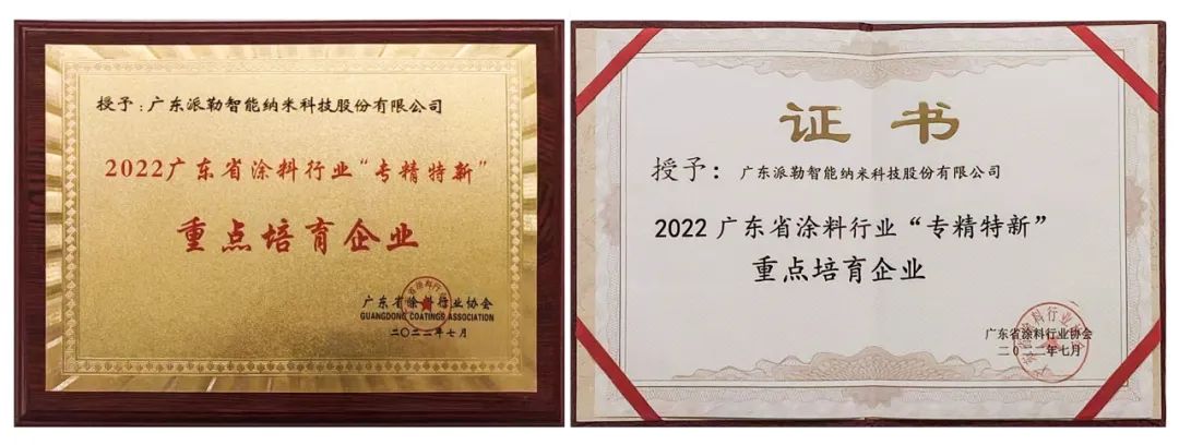 ?/span>“聚焦广东涂料专精特新力量”为主题,加强广东省涂料行业质量品牌建设,深入推进“专精特新”扶持培育工作,着力推进“增品种、提品质、创品牌”的三品战略,全面提升广东涂料行业“专业化、精细化、特色化、新颖化”企业高质量发展竞争力。本次大会对已经获得国家“专精特新”小巨人、省级“专精特新”中小企业、市级“专精特新”中小企业认定的广东巴德富新材料有限公司?4家会员企业和列入2022广东省涂料行业专精特新重点培育的江门市制漆厂有限公司?5家会员企业进行行业表彰。派勒智能荣获此殊荣,被历史惦记此时此刻,派勒智能将不负涂料行业协会众望,共同协力促进行业发展、/span>