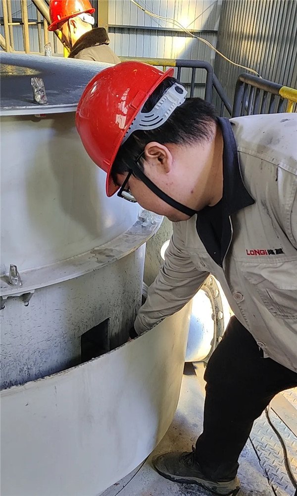 隆基工程师正同客户方技术人员、操作人员加强设备调试,并将定期协助客户做好维护工作,保证设备长期无忧运行、/p>