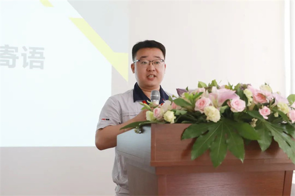 孙勇泽作为导师代表寄语新员工在工作中要保持热爱学习、积极进取的心态,不断积累知识,相信企业,相信自己,奋力向上攀登、/p>