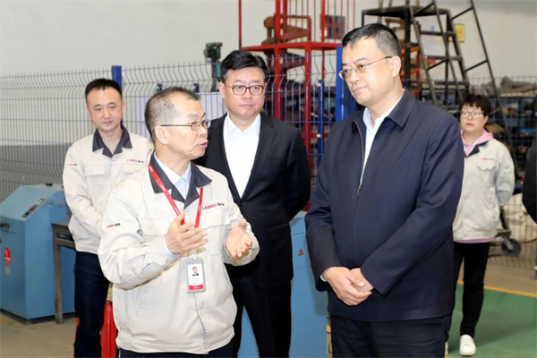 高涛一行先后走进隆基电磁研发中心、生产车间,听取了隆基电磁张承臣董事长关于产品研发、技术创新的汇报,并仔细询问了企业发展形势及研发投入等方面情况、/p>