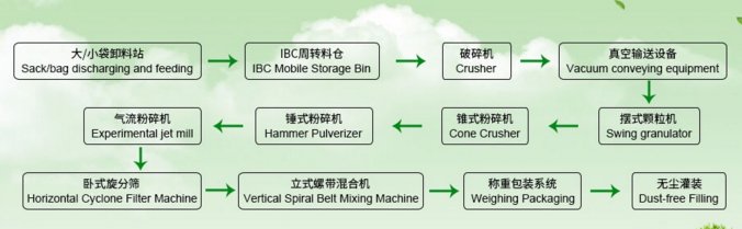 粉体生产包装纾/span>:粗碎机+小袋投料?移动料仓+锤式粉碎?卧式旋风筛分?称重包装机;从大块粉料到粉体包装的整条生产线是帕泰克优先推行的粉体处理设备,整条生产线实现了无菌化无尘化自动化的生产包装、/span>