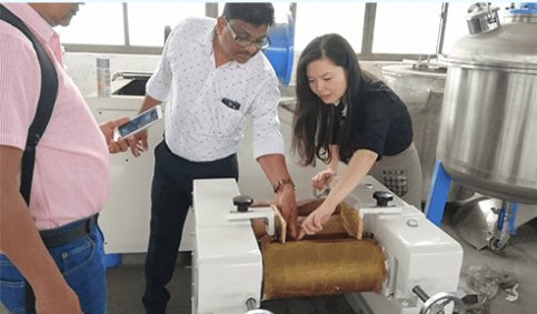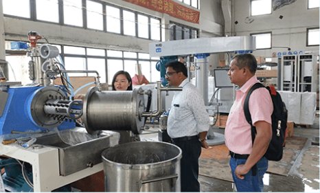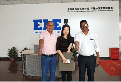 斯里兰卡油墨客户来访易勒机电工厂,现场咨询油墨用三辊机和砂磨机设备、/span>