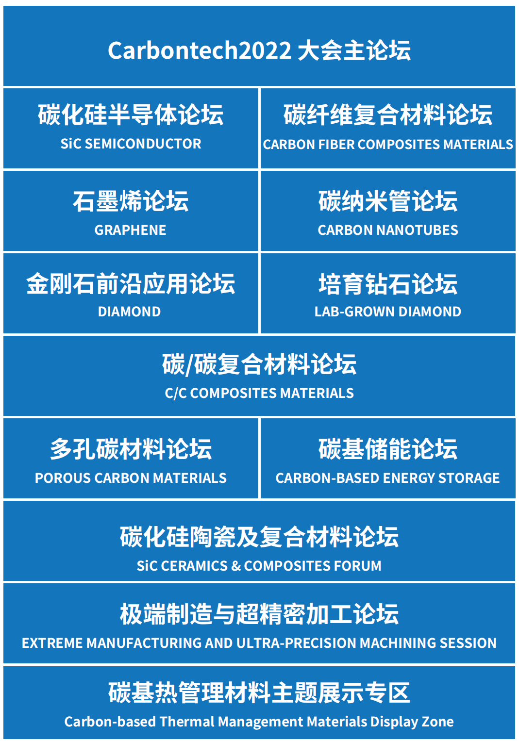Carbontech专注于推动碳材料行业高质量发展,始终秉持产学研融合,搭建碳材料行业交流平台载体,积极促进人才、技术及项目的合作交流与对接。在这里,看见碳时代。大会将诚邀碳材料领域专?00?,带来极具时效性和参考价值的300?碳材料主题报告分享,涵盖金刚石、极端制造及超精密加工、培育钻石、碳基储能、碳化硅半导体、碳化硅陶瓷、石墨烯、碳纳米管、碳纤维及碳/碳复合材料、多孔碳材料等相关碳材料主题论坛。同期举办圆桌会议,需求对接等碳材料主题特色活动、/span>