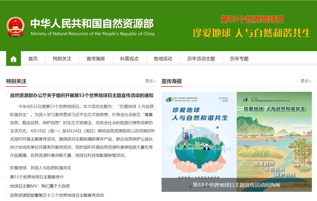 今年4?2日是?3个世界地球日。本次活动主题为:“珍爱地 人与自然和谐共生”。为深入学习宣传贯彻习近平生态文明思想,引导全社会树立“尊重自然、顺应自然、保护自然”的生态文明理念,动员全社会积极践行绿色低碳的生活方式??8日(周一)至4?4日(周日)期间自然资源部将以活动周的形式组织开展主题宣传活动。围绕活动主题制播新媒体产品,联合自然保护公益伙伴计划成员单位开展系列宣传活动,同时组织开展自然资源科普微视频大赛优秀作品展播、自然资源科普讲解大赛、地球日科技电影展映等活动、/p>