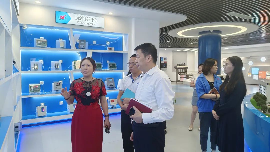 协昌环保CTO兼智慧除尘事业部总经理周育国,带领蒋卫东副局长一行参观展厅,并介绍了协昌的产品以及智慧除尘整体解决方案、/span>