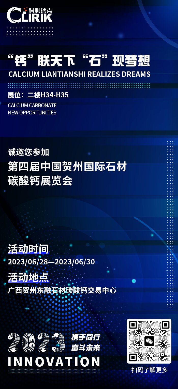 以“钙联天 石现梦想”为主题的第四届中国贺州国际石材·碳酸钙展览会将于6?8?30日在广西贺州举办。精细化工业制粉行业卓越高端制粉设备供应商上海科利瑞克机器有限公司邀您共襄盛举!