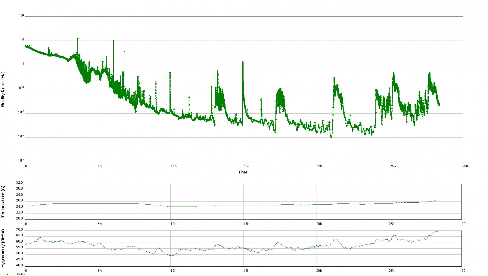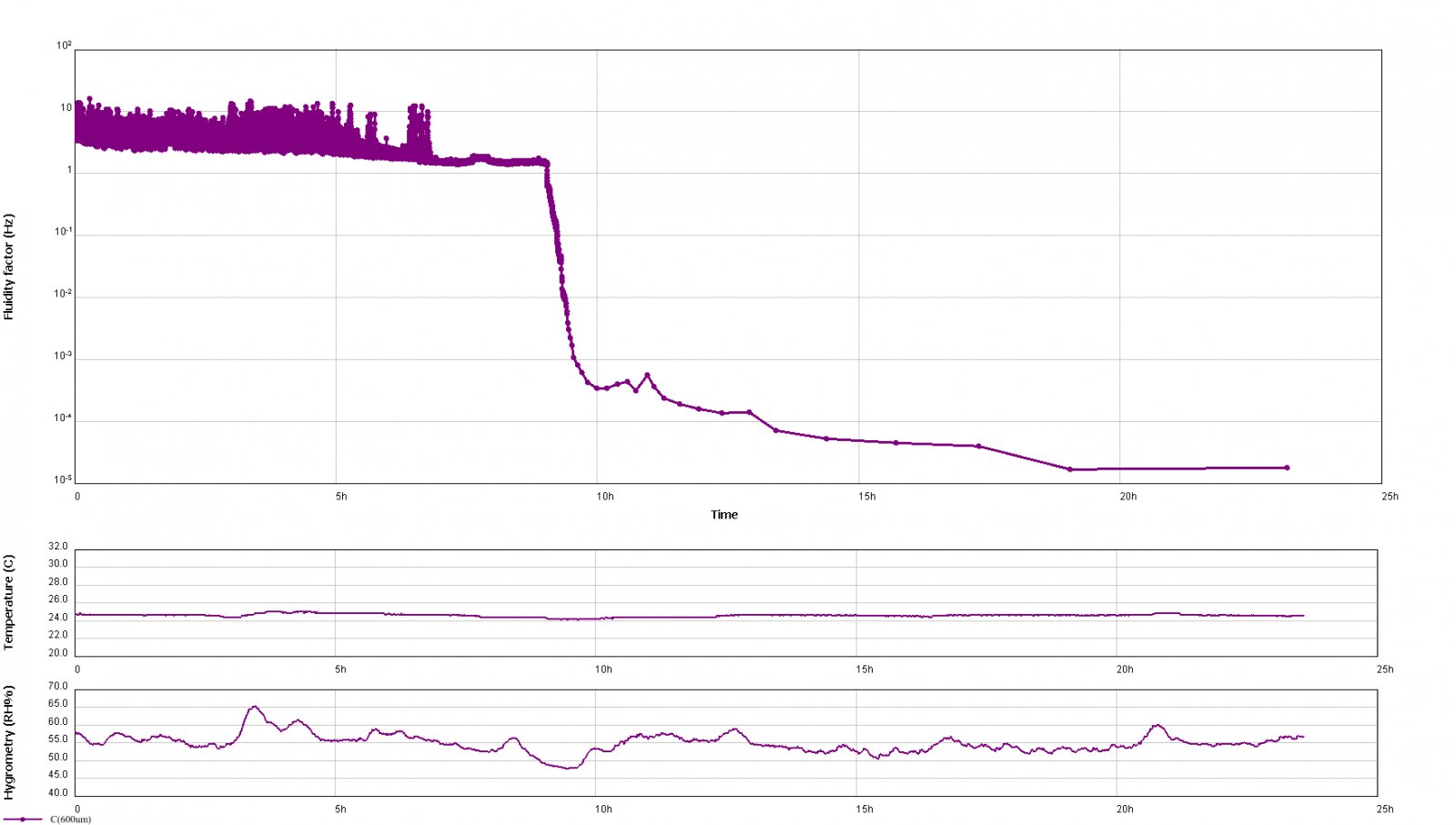 样品C 600微升?5℃,湿度55-70%。TC-1: 12200s 1.32Hz TC-2:19825s 0.802Hz TC-3?6692s 0.000338Hz