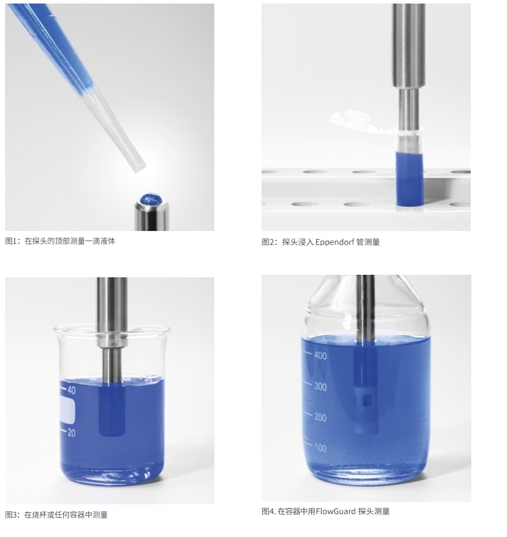 NANOTRAC FLEX独特的探头设计可以实现只需要一滴液体滴在探头的顶部进行测量(图1), 这样测量只需最小的样品?μl。探头同时也适合1.5mL Eppendorf 管(?)。对于NANOTRAC FLEX 来说,每个容器都可以用作测量池(?),不需要任何的比色皿。NANOTRAC FLEX 的探头设计可以实现在一个反应过程中离线或在线监测颗粒的粒径变化。在反应中,分散相通常处于是流动或搅拌中, 分散相的运动将会掩盖布朗运动,在这种情况下用DLS测量几乎不可能的,为了测量搅拌中或流动的液体,Microtrac研发了一款FlowGuard探头(图4),FlowGuard探头是在原来的探头周围加了PTFE 外壳, 它可以防止测量表面受到湍流的影响,外壳上孔口能够确保样品不停的交换,在探头的界面处同时减缓搅拌的运动速度。这种设计确保测得悬浮液粒度分布的准确性和代表性。NANOTRAC FLEX探头在测量任何类型样品时都非常容易和快速的清洗、/span>