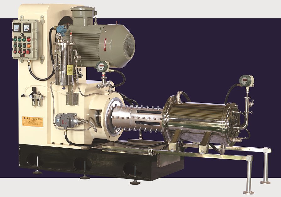 国内外普遍使用卧式砂磨机生产农药悬浮剂产品;密闭卧式砂磨机比立式砂磨机能力可提高?倍,起劲功率低,消耗能量小,更深受用户青睐、/p>