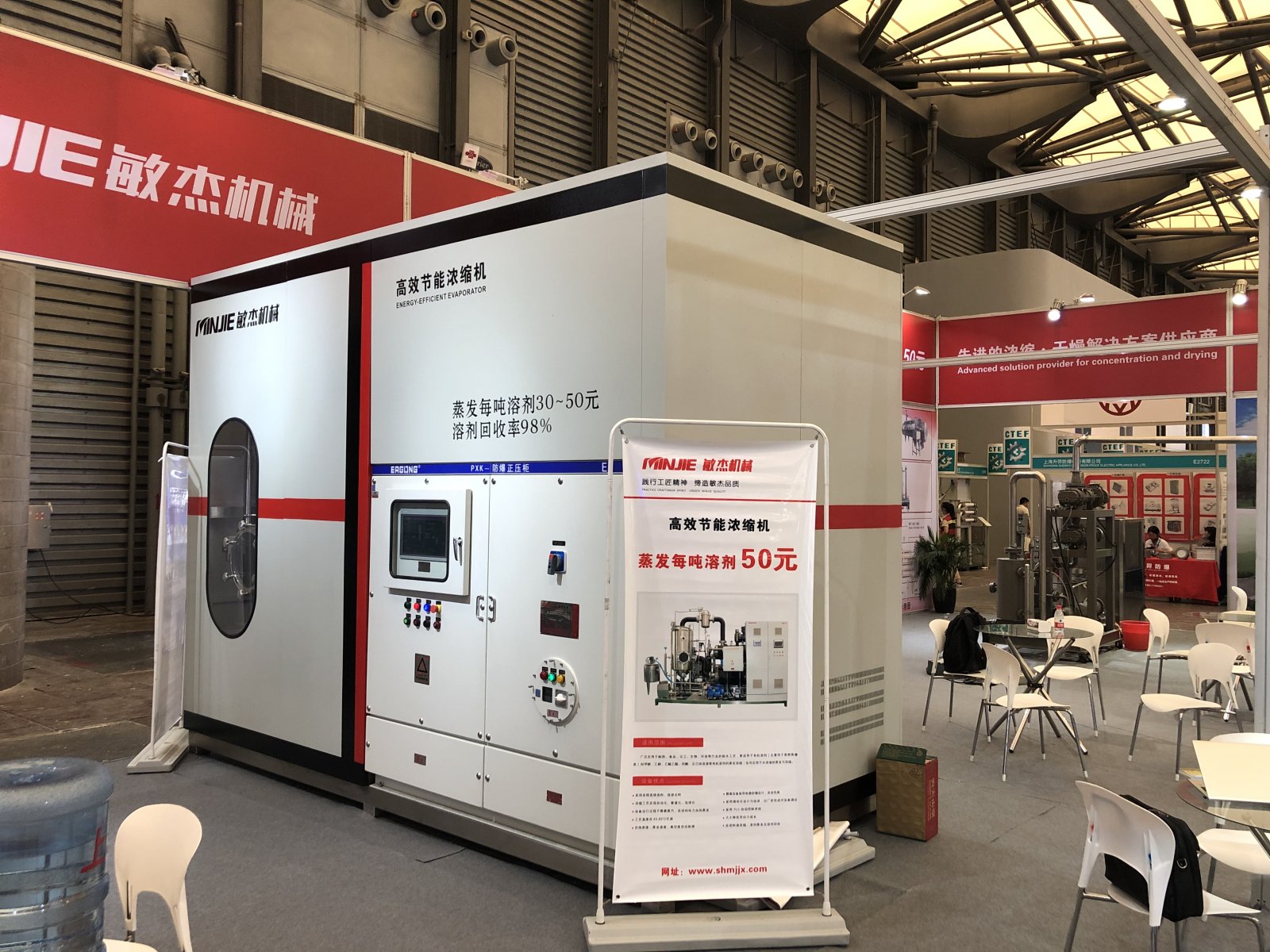 展位上展示的有真空带式干燥机以及高效节能浓缩机等,尤其高效浓缩机是我们自主研发的新产品。每蒸发一吨溶剂只需?0元、/p>