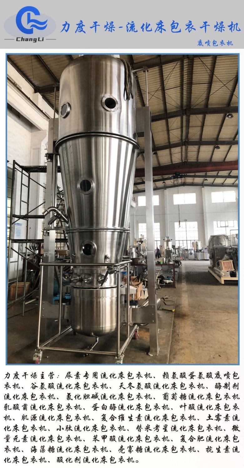二、赖氨酸底喷流化床包衣机原理在包衣过程,要求引入气流有较高的温度以满足水分或溶剂蒸发的需要,小液滴向前运动一段尽可能短的路程就能接触到颗粒、丸,只有在上述条件下,制得的包衣产品才能保持释药速率的重现性。另外。颗粒、丸必须迅速地通过包衣区,否则就会发生局部过度润湿而粘连成聚集体、br/>