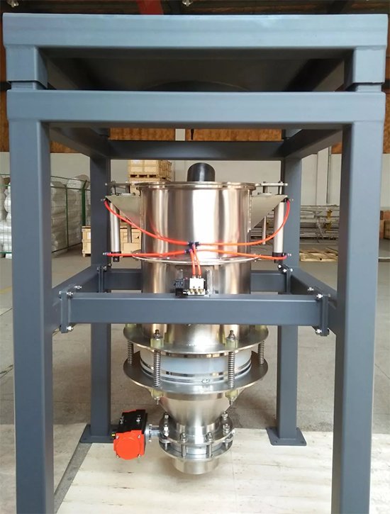 它能将大?吨袋的粉体落入储料仓,有效解决粉尘的泄漏,提高生产效率、降低操作工人繁重的体力劳动、/span>