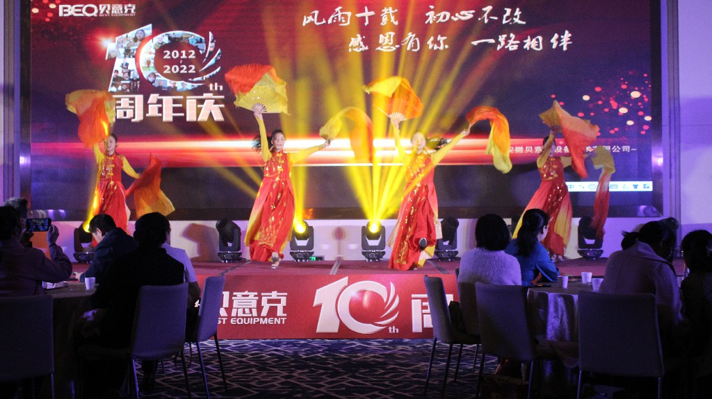 本次庆典活动共分为三个篇章。第一篇章“荣耀历程”中,,在开场节目《开门红》一番热情喜庆表演之后,孔令杰董事长上台致辞。在致辞中条分缕析的向现场来宾阐释了贝意兊/span>10年来的发展历程,及未来的企业规划,孔总表示:贝意克经过十年的不断发展,从安巢经开区的2.7万平米产丙/span>布局+/span>到肥西经开匹/span>5丆/span>平米贝意克智能装备产业园+/span>建成名/span>讽/span>月/span>贝意克工程设计中心,贝意克工程技术中心,贝意克联合实验室等研发公共服务平?/span>+/span>让我们看到了贝意克的明天更加辉煌、/span>