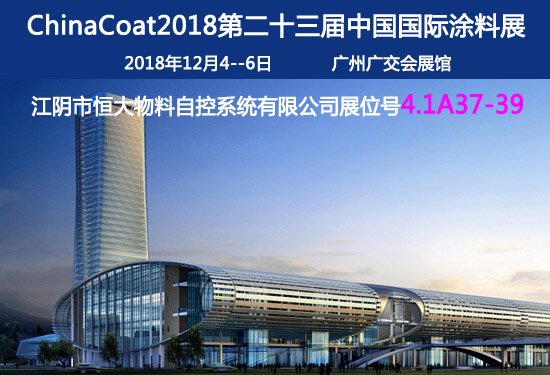ChinaCoat2018第二十三届中国国际涂料展将于2018?2?--6日在广州广交会展馆举行、strong>粉体自控解决方案供应?-江阴市恒大物料自控系统有限公 将携大容量脉冲气流混合机等产品亮相盛会,?.1A37-39展位等您、/strong>