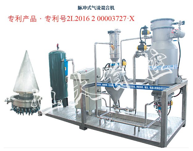 该混合机是将压缩空气经混合头上的喷嘴送入混合腔体内,物料瞬间随压缩空气沿筒壁螺旋式上升,形成流态化混合状态,经过若干个脉冲吹气和停顿间隔,即可实现全容积内物料的快速均匀混合、/span>