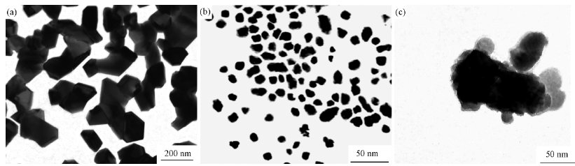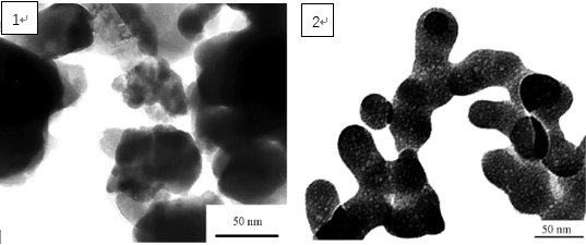 上图 ( a) ? b) ? c) 分别 150 r/min 转速下球磨 12?8?4 h 所得样品的 TEM 照片 ( a) 中样品为 200 nm 左右的不规则多边形颗粒,且可从照片中看出颗粒之间还有分散开来的趋势现象,具有不规则多边形结构的锑颗粒。但是由于球磨时间较短,制得的颗粒粒径较大,表面积能还较低,不足以阻止颗粒继续细匕( b)显示制备出的锑颗粒形状不规则,但颗粒粒径分布较均匀,OP-10 中的长链烷基疏水链具有极性键,易与金属颗粒表面发生作用,即以共价键形式的化学吸附进行结合,当具有疏水性的长链烷基吸附在锑颗粒表面,具有亲水性的聚氧乙烯链在颗粒外层包覆,并伸向液体介质蒸馏水中,形成较大的空间位阻。空间位阻效应即可防止锑颗粒因相互接近而形成团聚,又能够使锑颗粒之间在球磨过程中充分的搅拌、摩擦和剪切,两种作用的联合作用使得锑颗粒纳米化。同时,由于 OP-10 空间位阻效应的作用,使得纳米化的锑颗粒呈现较好的稳定性和分散性,粒径尺寸约为 10 nm; ( c) 中样品呈现团聚状和类球形结构,由于球磨时间的延长,使得锑颗粒的粒径减小,表面积能增大,当空间位阻效应无法有效的阻止晶粒团聚时,在较强的表面效应作用下使粉末发生团聚,颗粒大小约为 50 nm、/span>